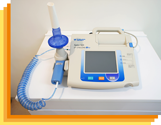 肺活量や息を吐く力を評価します。喘息の診断には、呼吸を楽にする薬を吸入していただき、どれくらい改善したか(可逆性変化)を評価することもしています。